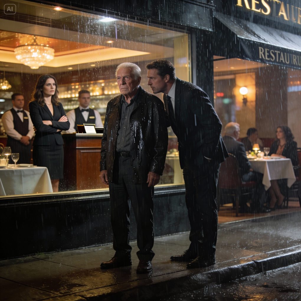 Humiliation burned through me hotter than the rain outside. I felt every gaze in the dining room flicker toward the old man being turned away. I wanted to explain, to defend myself, but my throat was tight with disbelief.
