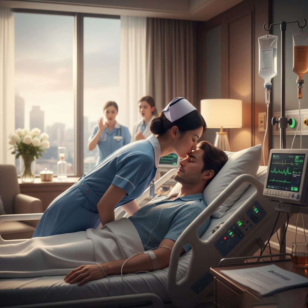 One late evening, when the ward was quiet and her shift was almost over, Emily lingered by his bedside. She brushed a strand of hair from her face, staring at him. “You know,” she whispered, “you probably won’t ever know this… but I think you’re the kind of man I could fall for.” Her voice trembled as she leaned closer. It was a foolish impulse, a reckless moment of longing.