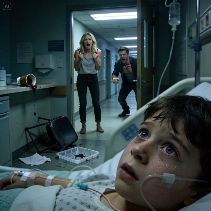 My mother backed toward my bed, her hands shaking. “Our son is sick,” she pleaded. “This isn’t the place.” My father slammed his hand against the wall, the sound echoing through the room. I flinched, my heart racing faster than the monitor could track. I felt trapped—unable to move, unable to protect her, forced to watch the person who was supposed to keep us safe turn a hospital room into another battlefield.