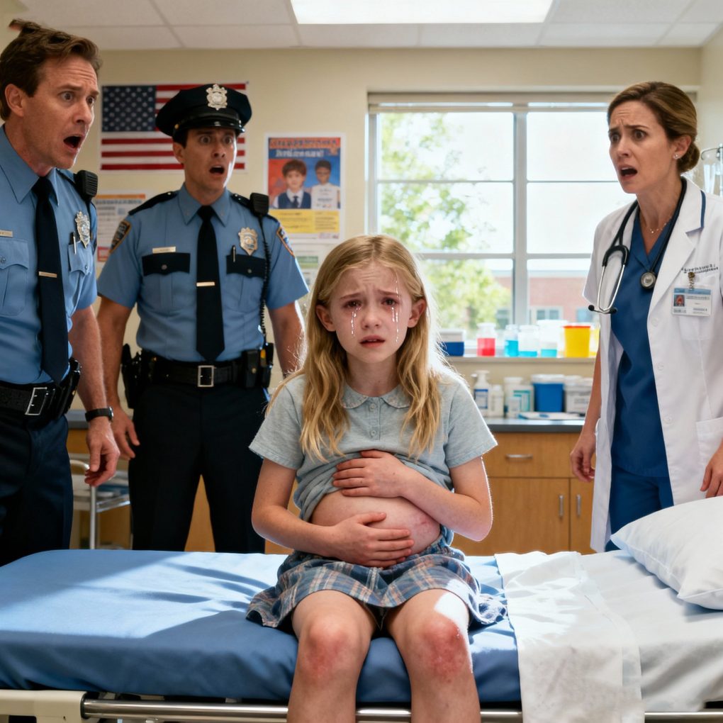 The operator froze. The voice belonged to a child—barely audible, terrified. Within minutes, police units and paramedics were dispatched to the school. Officers rushed through the halls until they found her—Emily Carter, a frail 9-year-old sitting in the nurse’s office, her hands gripping her abdomen.
