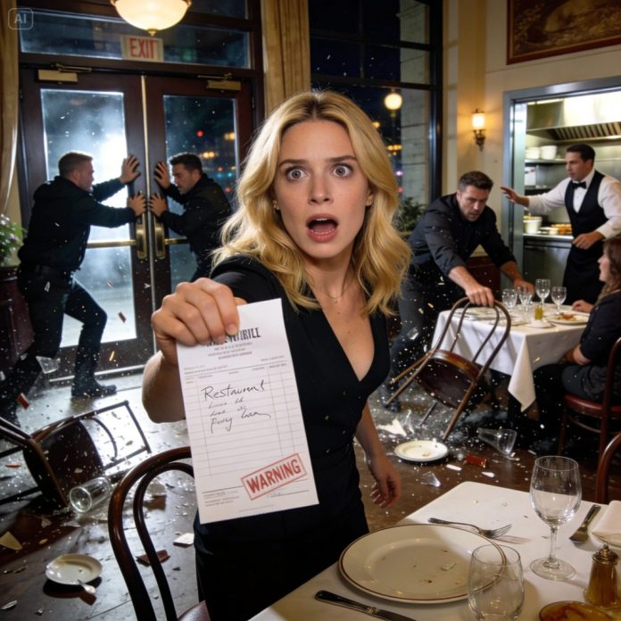 Before I could press further, the front door burst open. Three men stepped inside with the posture of people who weren’t here to eat. They didn’t scan the menu. They scanned faces. One shoved a table aside to clear space. Plates shattered. Conversations died mid-sentence.