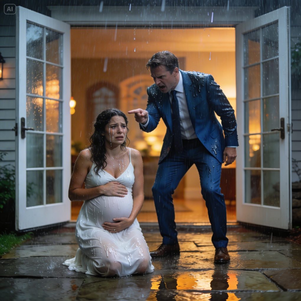 Marissa shifted slightly, resting a manicured hand over her belly. “Jon, let’s go inside,” she murmured softly, but the performance was deliberate. The rain did not touch her. He held an umbrella angled carefully to shield only her.