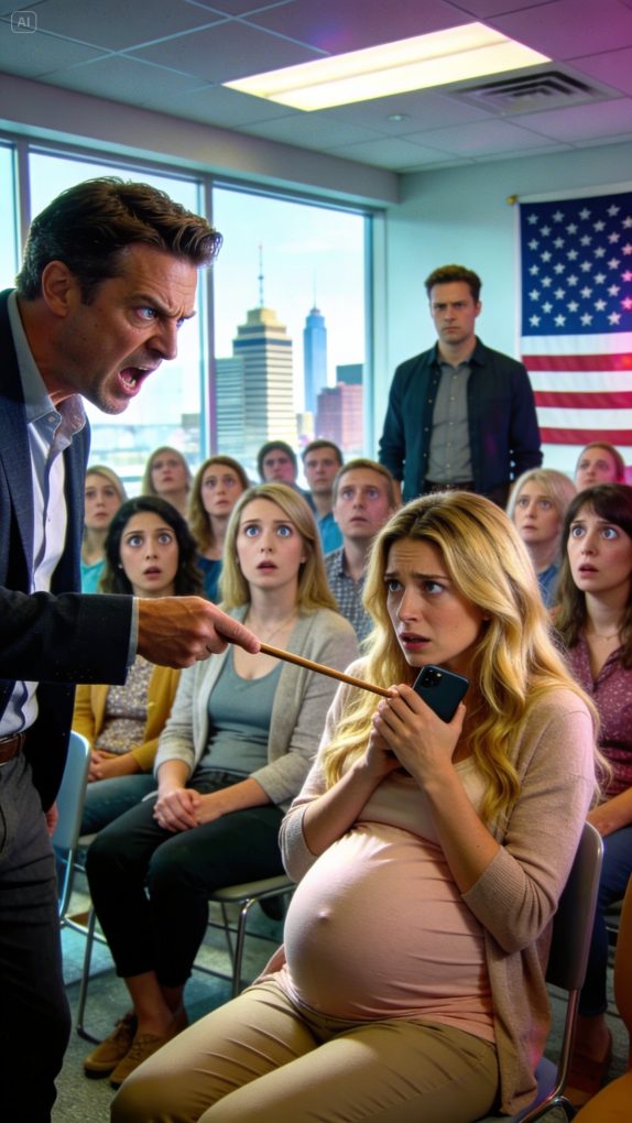 During a prenatal class in Seattle, he raised his hand and declared, “Pregnant women should stay silent and obey their husbands without question.” The entire room froze. He turned toward his wife with a smirk. “Say it. You agree, don’t you?” She bowed her head. “Yes…” Then she lifted her gaze, looked directly into the classroom camera, and said calmly, “Yes — I agree… so everyone here can hear exactly what you just said.” She hit record, broadcasting it openly. The instructor’s voice turned icy. “Sir, please step outside.” She rose from her seat too — not to walk out with him, but to place a folder on the receptionist’s desk: a pre-signed divorce filing, and official confirmation of a safe shelter for expectant mothers.