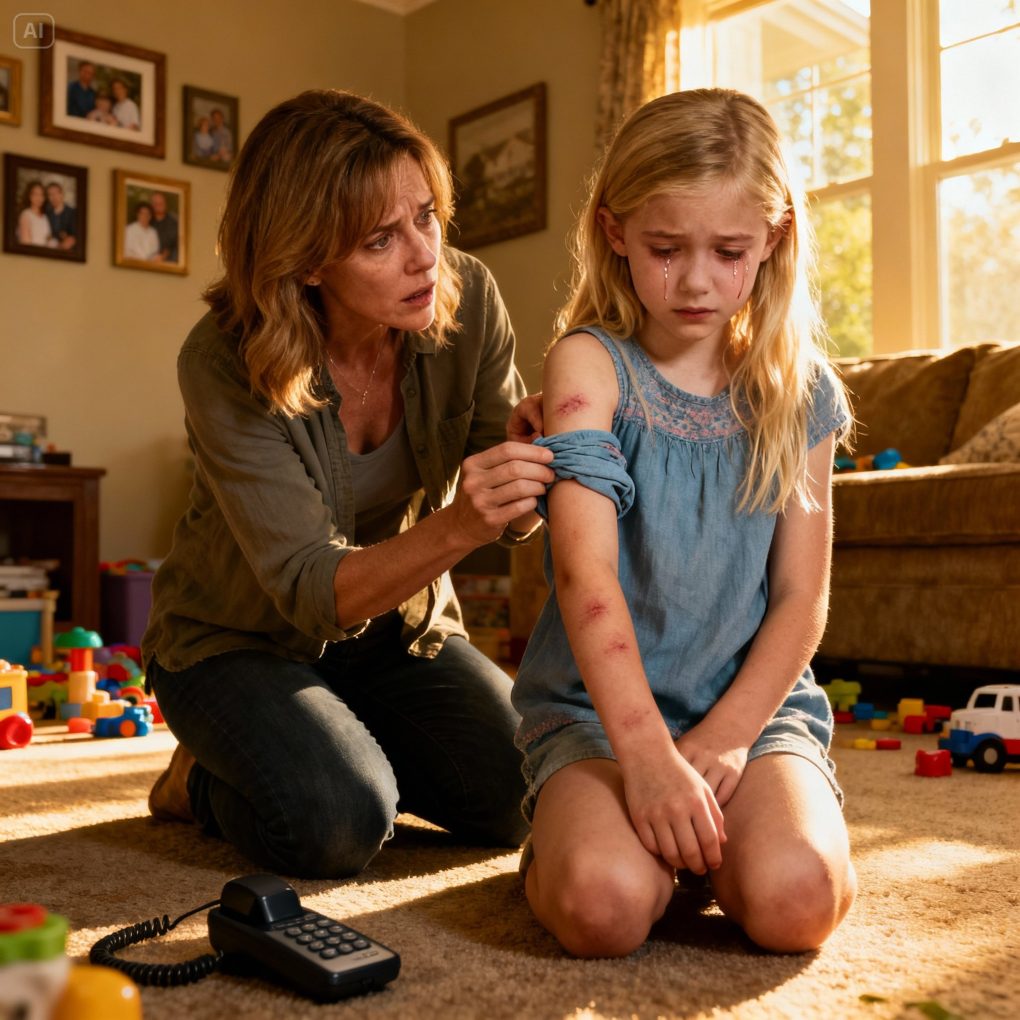 It was a bright Saturday morning in early May in suburban Austin, Texas, when Rachel Morgan, a 34-year-old single mother, noticed faint purplish marks on her seven-year-old daughter Emily’s upper arm. At first, she thought Emily had fallen at school, but when she asked, the little girl froze. Tears welled up in her eyes before she whispered, “Mommy… he harassed me… but I don’t know who he is.”