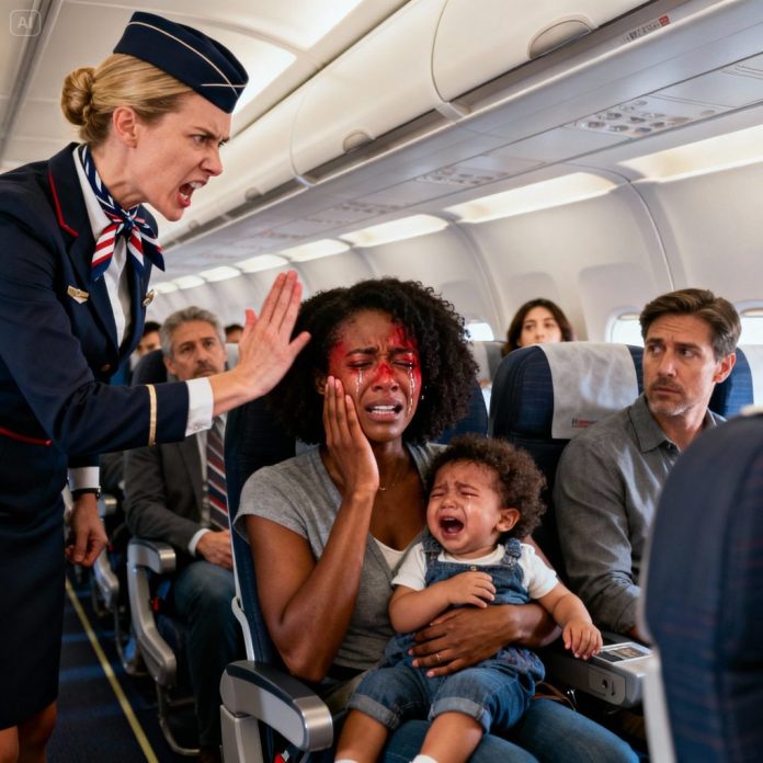 When a Black mother was slapped by a flight attendant while holding her baby, the cabin went silent. No one moved — until one man in first class stood up. What he did next would make everyone on that plane question their own humanity.