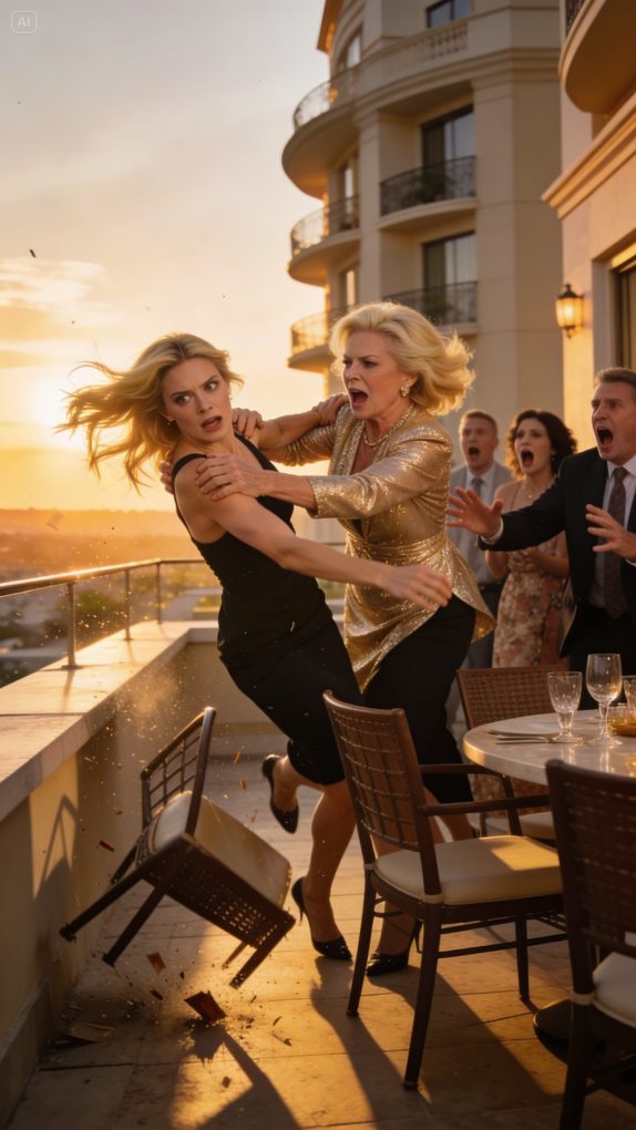 Her hands shoved me with a force I didn’t know she possessed. My body slammed against the ledge before falling into the empty space below. Pain exploded—hot, electric, blinding. The world turned upside down, distant voices echoing like underwater whispers.