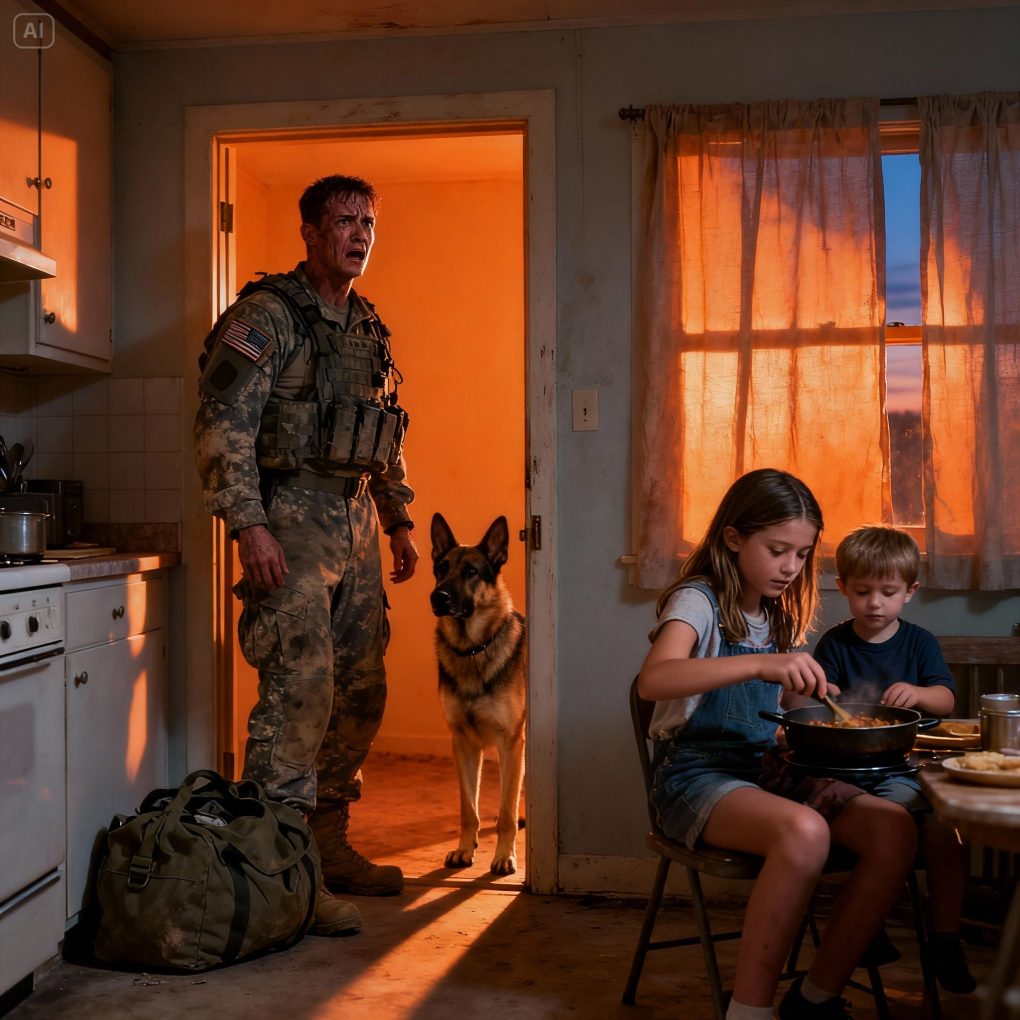 Mark felt the air leave his lungs. The dog, Max — a German Shepherd he had rescued years ago — stood between them and the door, watching him carefully, as if guarding the children from the world. Mark realized Max had been their only protector.