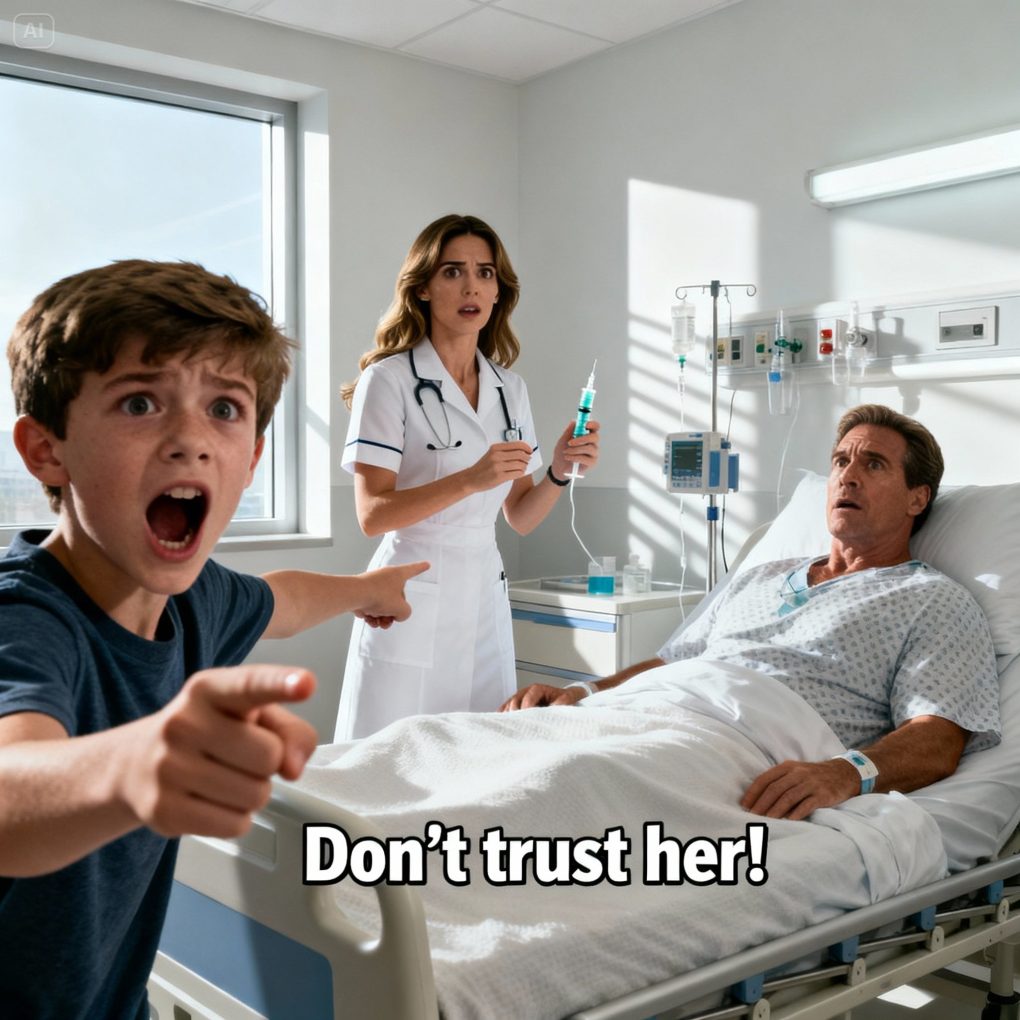 “Be careful! Don’t trust her! She’s not a nurse, she’s…” — a boy in the hospital shouted at the billionaire, and the truth that followed left everyone shocked…