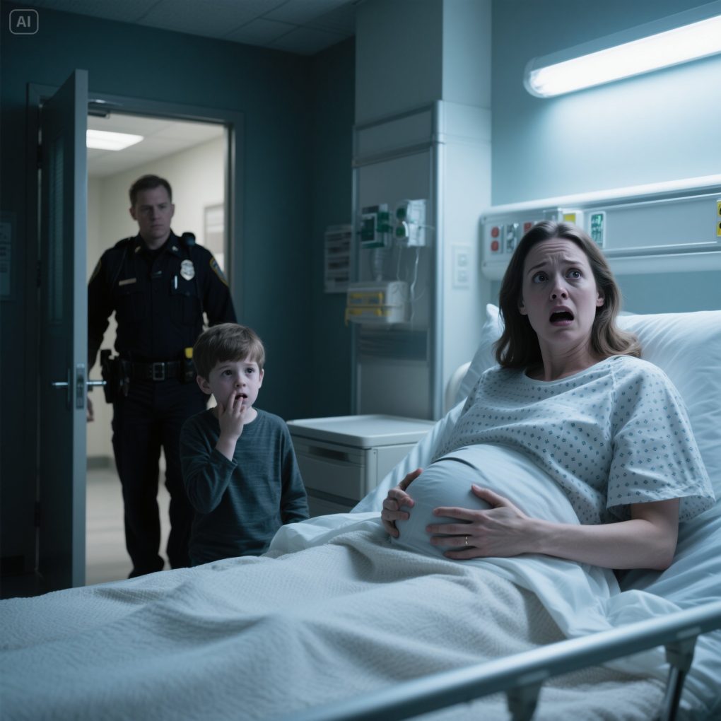 I was five months pregnant, staying at my husband’s parents’ house. In the middle of the night, I woke up to a strange white ceiling. I was in a hospital bed. My heart stopped as I reached for my belly—my bump was gone. Then the door swung open. A police officer led in my trembling 8-year-old son. He looked at me and whispered, “Mom… what I saw was…”