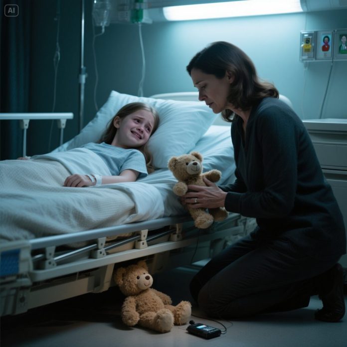 My 7-year-old daughter gave me a faint smile from her hospital bed. “Mom… this will be my last birthday.” I forced a smile. “No, you’re coming home soon.” She whispered, “Look inside my teddy bear under the bed. Don’t tell Dad.” I discovered a tiny recording device hidden inside. When I hit play… the voices I heard made my blood run cold.