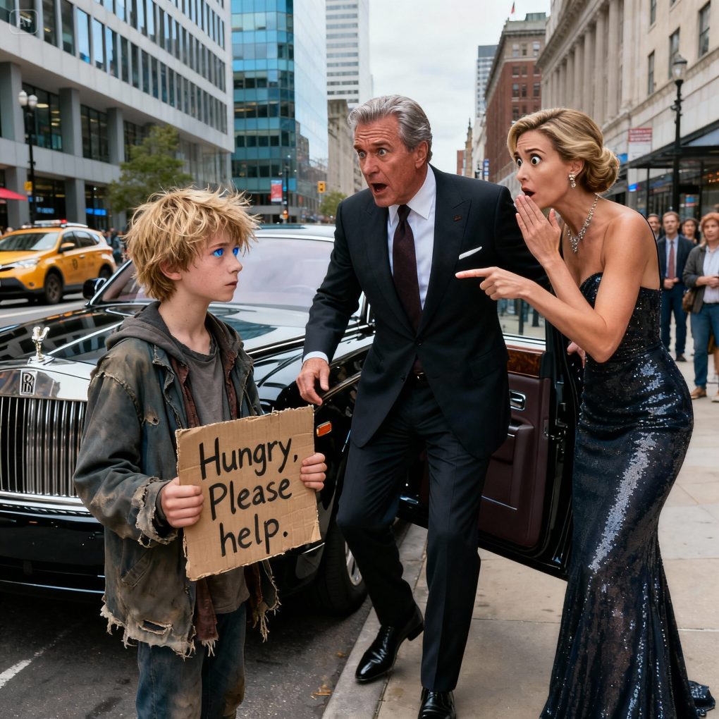 Robert followed her gaze. There, by the curb, stood a thin boy no older than sixteen, with messy blond hair, piercing blue eyes, and a tattered coat. He held a cardboard sign that read, ‘Hungry. Please help.’