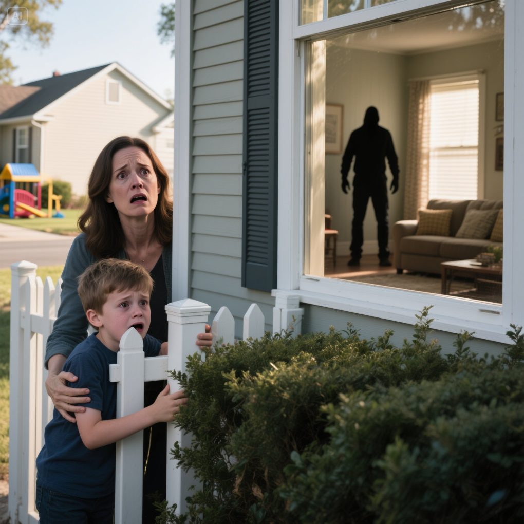 “There’s someone inside my house,” I whispered. “My four-year-old saw him. We’re outside hiding.”