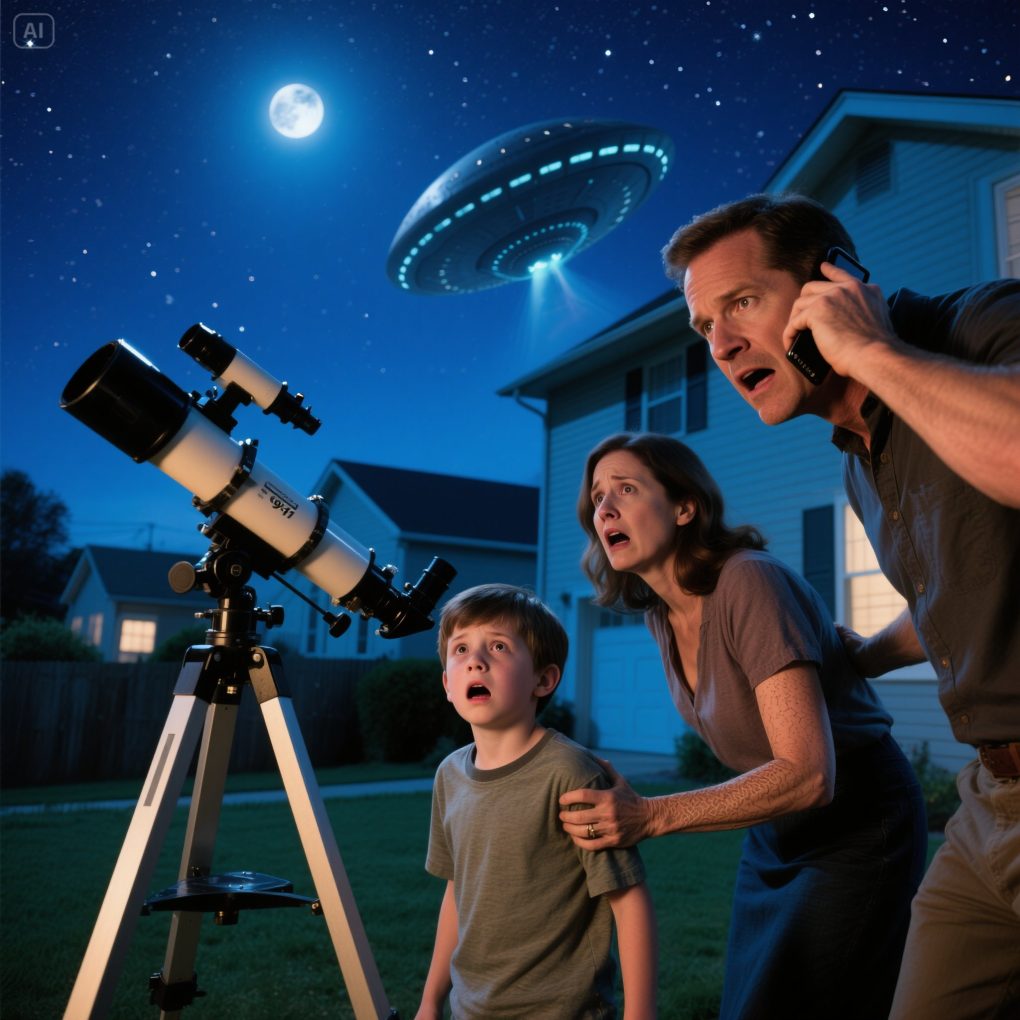 It was a clear Saturday night when our ten-year-old son, Ethan, decided to try out the telescope we had given him for his birthday. My husband, Daniel, had set it up in the backyard earlier that evening, carefully aligning it the way the manual instructed. The air was crisp, and the sky above our quiet Ohio neighborhood was unusually sharp and bright.