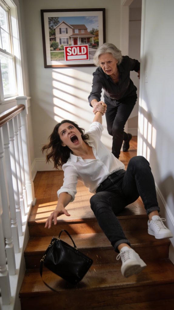 The argument began with money and ended with gravity. My mother, Patricia Monroe, placed the tuition invoice on the kitchen counter as if it were a bill I had forgotten to pay. Eighty thousand dollars. My younger brother Ethan’s first year at a private university he insisted was his “destiny.” He had been accepted two weeks earlier and had not secured scholarships or applied for loans because he believed something would work out. By something, my mother meant me. “You just closed that commercial deal,” she said. “You have liquidity.” I had worked twelve relentless years in commercial real estate to build that liquidity. Every commission reinvested, every expense calculated, every weekend sacrificed so I could finally afford a modest two-story craftsman house near the lake. My first real home. My name alone on the deed. “That money is tied up in escrow,” I said carefully. “It’s my down payment.” Her face hardened. “So your house matters more than your brother’s future?” “His future isn’t my responsibility,” I replied. “He can take out loans like everyone else.” The silence that followed wasn’t disappointment. It was anger sharpening into something colder. “You’re selfish,” she said quietly. “I’m setting boundaries,” I answered. I left before the argument escalated further, believing the worst consequence would be emotional pressure or guilt. By 7:10 the next morning, I learned how wrong I was. My real estate attorney called first. “There’s a serious issue,” she said. “The property has been transferred.” My mind rejected the sentence. “Transferred how?” “Sold. Deed executed overnight. Funds disbursed.” “That’s impossible. I didn’t sign anything.” She hesitated. “We have a notarized signature.” My hands went cold. I drove straight to the house. My mother stood on the porch beside a notary in a gray suit, both calm as if nothing extraordinary had happened. “You forged my name,” I said. She didn’t deny it. “You left the documents accessible. I corrected your priorities.” “You had no right.” “You belong to this family,” she replied evenly. “What’s yours is ours.” I stepped toward the front door in disbelief. That’s when she shoved me. Hard. My heel caught on the edge of the second-floor balcony railing. I lost balance and felt the world drop away beneath me. The fall was silent until impact. My back struck the sloped yard below and the air burst from my lungs in a violent rush. Pain exploded across my ribs. Above me, she leaned over the railing. “You’re overreacting,” she called down. Then the door slammed. By the time I forced myself upright, the locks had been changed. My phone, keys, identification—everything—remained inside. I stood there shaking, not just from injury but from the realization that a tuition argument had become assault and theft in less than twenty-four hours. By nightfall I was in the emergency room with a fractured rib and concussion symptoms. I believed I had lost my house, my savings, and any illusion of security. I had no idea the forged signature she used would ignite something far larger than family betrayal.