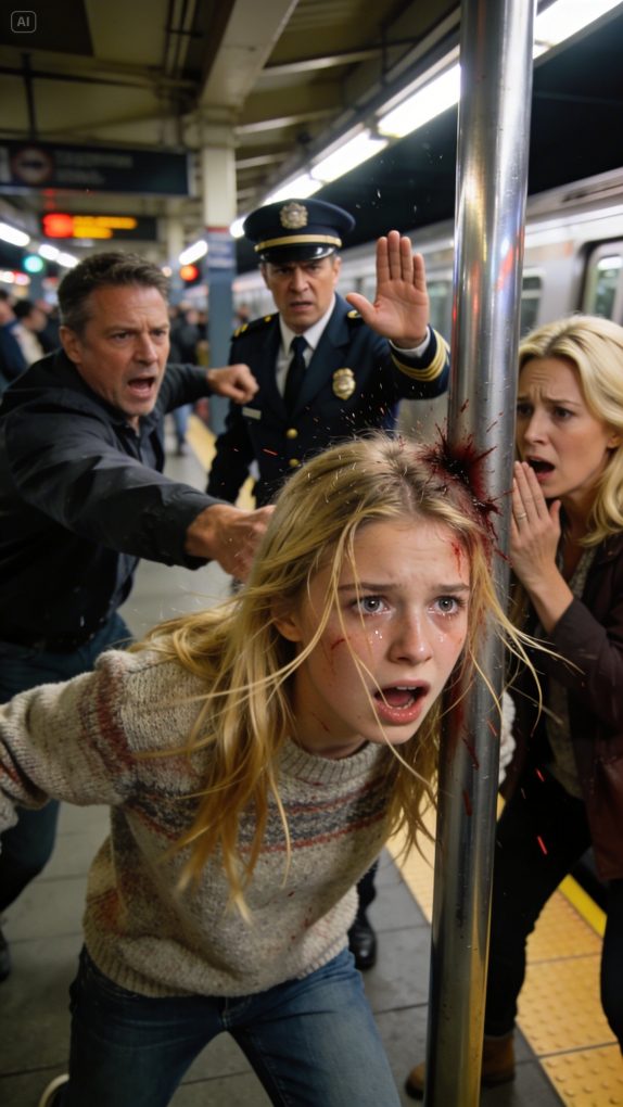 My mother’s mouth opened, but no sound came out. Greg recovered first, because men like him always do. He stepped forward, shoulders wide, trying to reclaim the space. “This guy’s crazy,” he snapped to my mother, then to the conductor. “You can’t just make up stories. She’s my stepdaughter.” The conductor didn’t flinch. He raised his radio, voice measured. “Transit police to Platform Two. Assault in progress.” Greg’s eyes flashed. “Assault?” he scoffed, as if the word itself was offensive. My cheek throbbed, my head still ringing from the pole, and suddenly I realized I’d been taught to treat violence like weather—unpleasant but normal. The conductor stood between us like a wall, and that alone felt unreal. “Ma’am,” he asked my mother, “did you see him hit her?” My mother’s eyes darted. She could have said no. She could have protected Greg the way she always did. Instead she whispered, “We just need to go.” It wasn’t an answer. It was an escape plan. Greg grabbed her hand. “We’re leaving,” he said. He reached for my arm again. The conductor shifted, blocking. “No,” he said firmly. “She’s staying right here until authorities arrive.” Greg’s face tightened. “You touch me and I’ll sue the whole rail system.” “I’m not touching you,” the conductor replied. “I’m protecting her.”