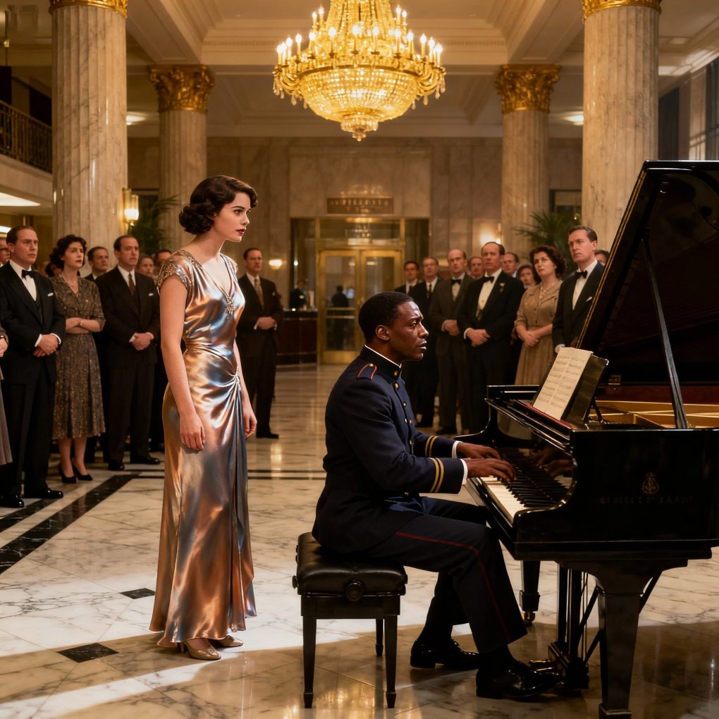 One humid afternoon, Evelyn descended the grand marble staircase of the hotel’s lobby, where a new gatekeeper stood at the entrance. His name was Samuel Carter—a quiet, dignified man in his thirties, hired recently after returning from years of performing as a pianist in Harlem clubs. To Evelyn, however, he was just another servant.