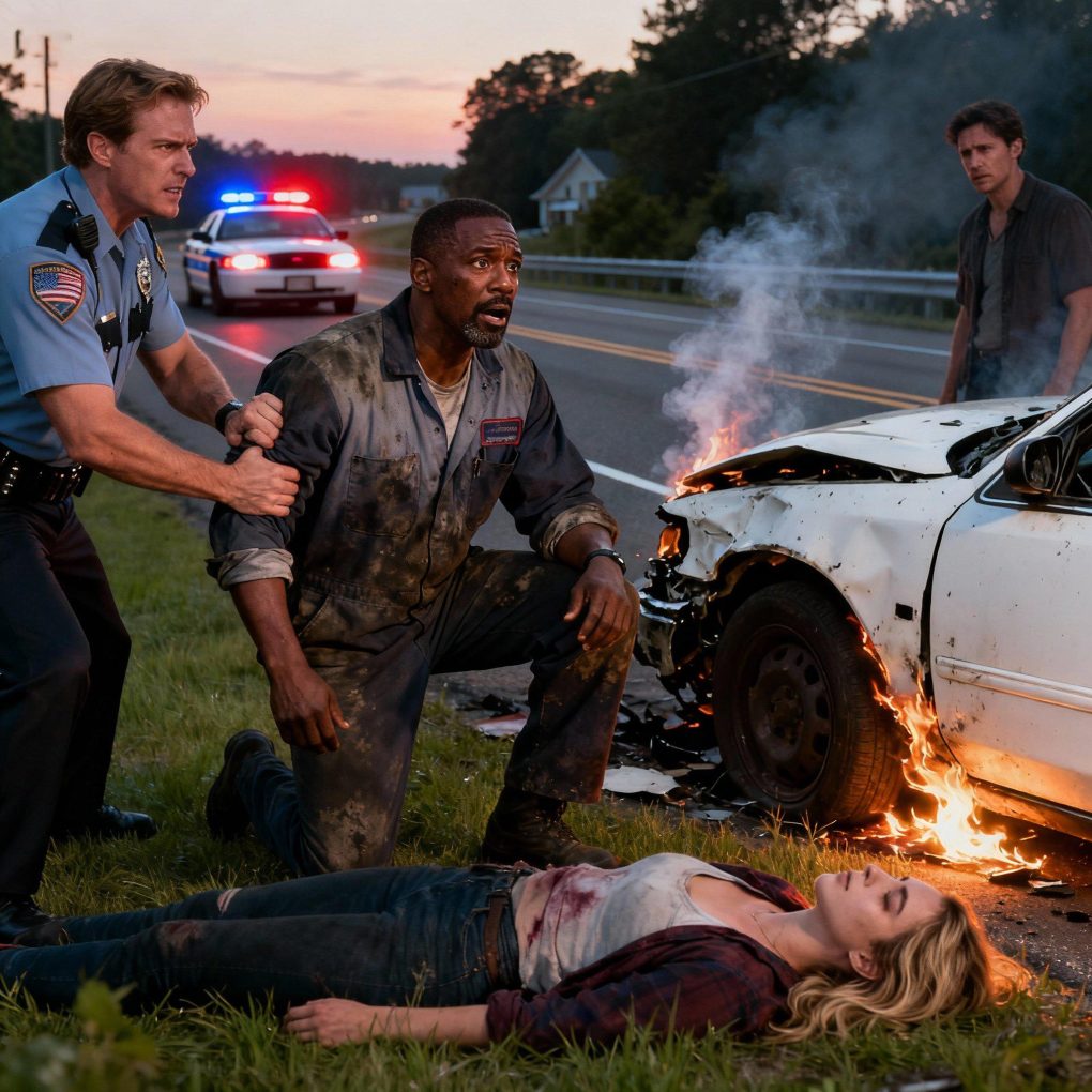 The crowd murmured angrily. An older woman shouted, “He saved her, officer! We saw it!” Others echoed the sentiment, holding up phones that had caught Malik dragging Emily away from the burning wreck.
