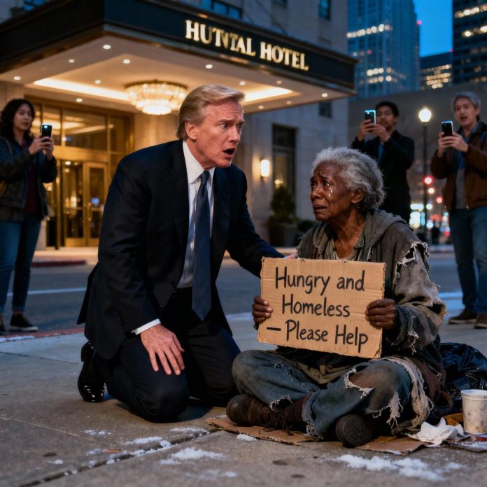 As Benjamin strode toward his office tower, his eyes fell on a frail figure sitting on the cold pavement near the subway entrance. An elderly woman, wrapped in a thin, tattered coat, held a cardboard sign that read: “Hungry. Please help.” Most people walked past without a second glance. Something about her posture, her tired eyes, and her gentle hum stopped him in his tracks. It was a tune he hadn’t heard in decades — a lullaby.