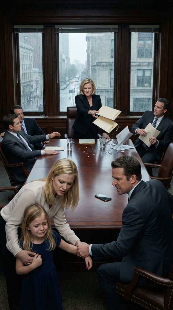 My husband, Daniel, sat rigid beside me, hands locked together. Our daughter Lily—eight years old, missing one front tooth—perched between us, swinging her legs under the table. Across the polished surface were Daniel’s family: his brother Mark with his smug half-smile, his sister Jenna tapping a manicured nail, and, at the head, Richard and Patricia Whitmore—my in-laws—pressed and perfect.
