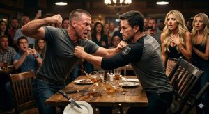 He stood so abruptly his chair screeched across the floor, the sound cutting through the room. Conversations around us faltered. The server paused mid-step, tray hovering, eyes darting between us like she’d walked into a fight.