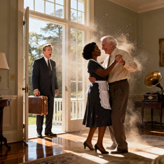 His father, Walter Reed — a retired university professor in his late seventies — was dancing slowly with Ruth, the family’s long-time maid. Ruth, a dignified Black woman in her fifties, had been with the Reeds for nearly two decades. She’d practically raised Thomas after his mother died. Her hands, always so careful polishing the silver or arranging flowers, were now resting tenderly on Walter’s shoulders.