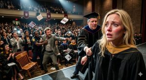 Part 2 : I tripped off the stage. The gown suddenly felt like a net. Dr. Rhodes released my hand as if it burned him, and the next graduate stepped forward, blocking my view. I found my mother’s eyes in the crowd—wide, pleading—and then Mark moved, not toward the exit like an embarrassed parent, but toward the aisle, steady as a man walking into a storm he’d already memorized.