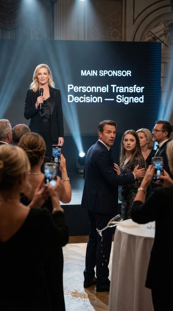 I spoke into the mic with a calm smile. “Let me introduce tonight’s main sponsor,” I said, “the person who just signed the personnel transfer decision.”