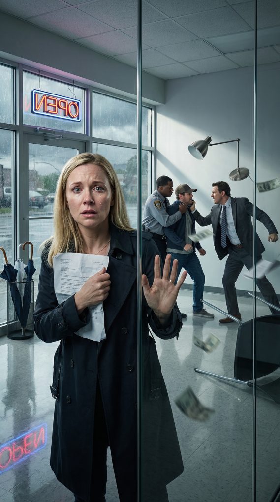 The knocking stopped. After a long pause, Mark said softly, “You’ll regret this,” and his footsteps faded into the rain.