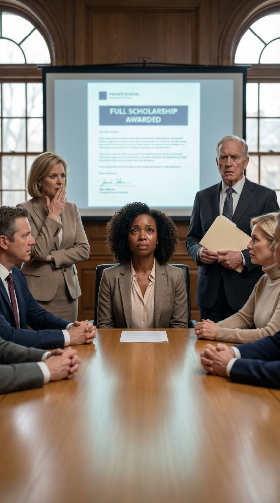 “You’re looking at a scholarship confirmation letter,” I replied evenly. “A full scholarship awarded to my son—covering tuition, fees, and program costs. For three years.”