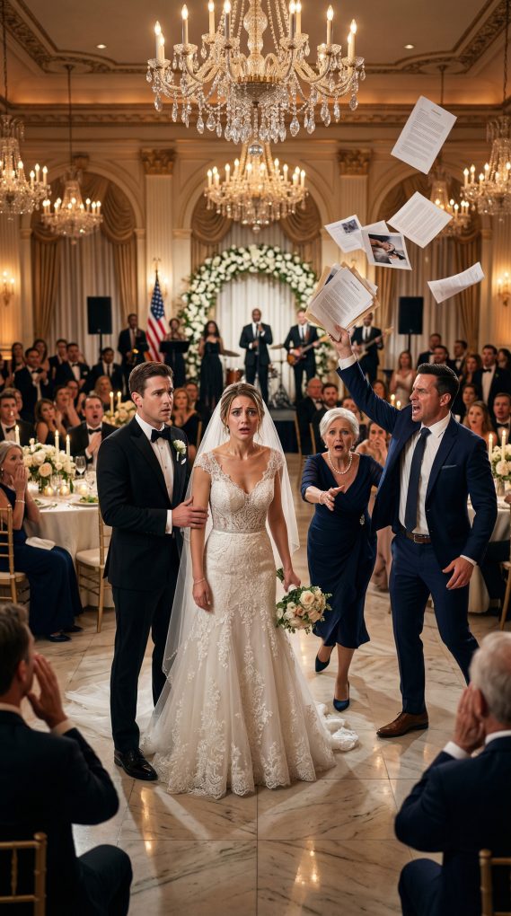 My wedding day was supposed to be the one day when everyone pretended the past didn’t exist. The ballroom glittered with crystal chandeliers, 150 guests filling round tables draped in white linen, champagne glasses chiming softly with polite laughter. My father stood near the head table in a tailored tuxedo, shaking hands with business partners like he had arranged the entire celebration personally. Technically, he had paid for most of it. That was something people liked to remind me of. My mother sat quietly near the back of the room, wearing a pale blue dress she’d ironed three times that morning because she said wrinkles looked disrespectful. She had always been like that—careful, quiet, apologetic even when she’d done nothing wrong. My parents had been divorced for twelve years, but my father still carried himself as if the separation had been a minor inconvenience rather than the collapse of a marriage. He had money. He had influence. My mother had a small apartment and a job at a neighborhood bank where she balanced ledgers by hand because she trusted numbers more than computers. Right before the ceremony started, when the guests were distracted by the string quartet warming up, my mother approached me near the side hallway. Her hands trembled slightly as she pressed something into my palm. It was an old savings book, the kind banks used decades ago—thin cardboard cover, faded blue ink stamps on every page. “For you,” she whispered. “Open it later.” I blinked, confused. “Mom, you didn’t have to—” “Just keep it,” she said gently. Her eyes shone with something I couldn’t read yet. Before I could ask another question, my father appeared beside us. He had that sharp look he used when he believed someone had crossed an invisible line. “What’s that?” he demanded. My mother froze. “Just something for her,” she said softly. He snatched the savings book out of my hand before I could react. His expression darkened instantly as he flipped it open. Then, in front of the hallway—and the first wave of arriving guests—he hurled it onto the cold marble floor. The sound echoed sharply. “Garbage belongs with garbage!” he barked loudly. For a moment, the entire room went still. People turned. Conversations stopped mid-sentence. My father’s voice cut through the ballroom like broken glass. And it was obvious he wasn’t talking about paper.