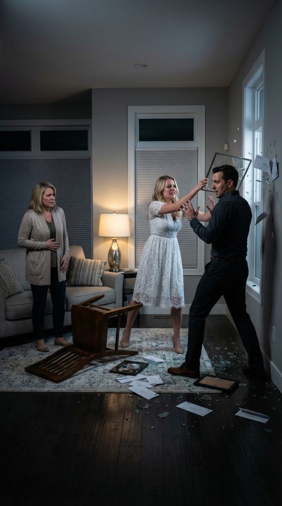 For several seconds I just stood there staring at them, convinced I had misunderstood what I heard. “Pregnant?” I repeated slowly. My mom nodded while tears formed in her eyes. Daniel refused to look at me. My brain struggled to process the situation. My mother was forty six years old. The idea of her being pregnant already seemed shocking. But something in the room told me the real shock was still coming. I crossed my arms tightly. “Okay,” I said carefully. “Who’s the father?” The silence that followed answered the question before either of them could speak. My eyes moved slowly from Daniel to my mother and back again. Suddenly the truth slammed into me like a truck. “No,” I whispered. Daniel stepped toward me nervously. “Emily, listen—” “No!” I shouted, stepping away from him. “Please tell me that baby is not yours.” My mom began crying quietly but Daniel still said nothing. That silence was confirmation. A wave of rage rushed through me. I threw the stack of wedding invitations across the room. Papers exploded into the air and drifted across the floor. “You slept with my mother?” I screamed. Daniel tried to grab my arm. “It was a mistake!” I shoved him away violently. “A mistake doesn’t last long enough to make someone pregnant!” My mom reached out to me with shaking hands. “Emily please—” “Don’t!” I snapped. “Do not say my name.” My chest burned with anger. Suddenly every memory from the last four years felt disgusting. All the family dinners. All the times Daniel volunteered to help my mom with things around the house. All the times I thought they were bonding. I grabbed a picture frame from the dresser and hurled it across the room. It smashed loudly against the wall. “How long?” I demanded. Daniel rubbed his forehead nervously. “It just… happened.” I laughed bitterly. “That’s not an answer.” My mom wiped her tears. “Six months,” she whispered. Six months. Half a year of lies. Half a year of pretending to help me plan my wedding while secretly sleeping with my fiancé. My hands trembled with anger as I pulled the engagement ring off my finger and threw it straight at Daniel. It hit his chest and dropped to the floor. “The wedding is over,” I said coldly. Daniel’s face went pale. “Emily please don’t do this.” I looked at him with a hatred I had never felt before. “You already did.”