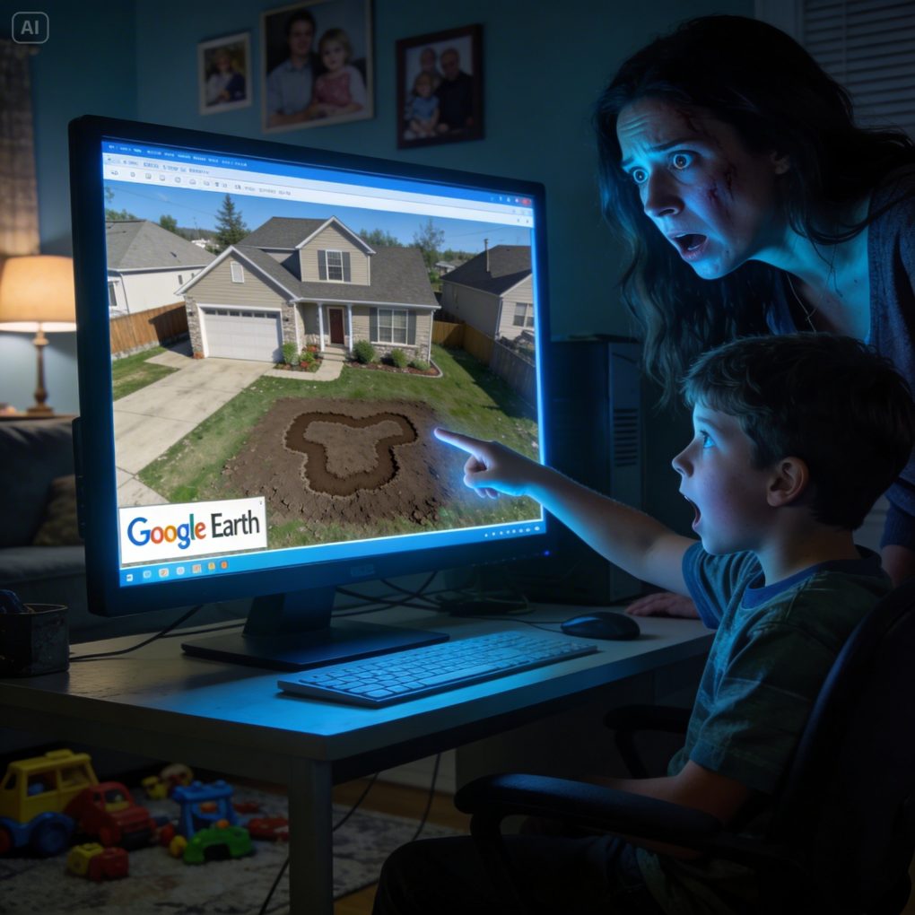 My eight-year-old son was exploring Google Earth. “Mom, I found Grandma’s house! Look at this!” he said excitedly. I glanced at the screen and noticed something strange in my mother’s backyard. The moment I saw it clearly, my face went pale. “Get in the car right now,” I said. I rushed my son into the car and drove toward my mother’s house, but…