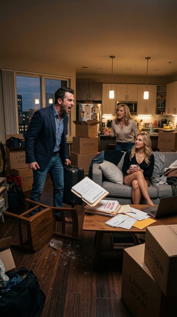 For several seconds the three of us just stood there in the living room, surrounded by Rachel’s boxes and the strange feeling that my own home had suddenly become someone else’s territory. I set my suitcase down slowly, trying to keep my voice calm even though anger was building inside my chest. “This isn’t going to work,” I said. Rachel frowned. “What do you mean?” I looked directly at her. “You can’t just move into my condo without asking me first.” My mother immediately stepped in. “Your sister just went through a divorce. She needs support.” I ran a hand through my hair, struggling to stay patient. “Support doesn’t mean taking over my home.” Rachel stood up from the couch now, clearly annoyed. “You’re acting like I broke into the place.” I looked around at the boxes again. “You practically did.” My mother shook her head in frustration. “You’re being dramatic.” I laughed under my breath. “No. I’m being realistic.” Rachel grabbed one of the boxes from the floor and set it on the table with a loud thud. “So what, you’re kicking me out?” I crossed my arms. “Yes.” The word hung in the air like a challenge. Rachel stared at me in disbelief. “After everything I’ve been through?” I kept my voice steady. “Your divorce isn’t my responsibility.” My mother’s tone immediately became sharper. “That’s an incredibly selfish thing to say.” I turned toward her. “What’s selfish is moving someone into my home while I was out of state.” Rachel began pacing across the living room, clearly getting more frustrated with every second. “I don’t have anywhere else to go right now,” she said. “Then you should have talked to me before moving in,” I replied. My mother stepped between us like she was trying to take control of the situation. “Tyler, you make good money. You travel all the time. This place is half empty anyway.” Hearing that made my patience finally snap. “It’s empty because it’s my space.” Rachel rolled her eyes dramatically. “You’re unbelievable.” I walked over to the kitchen counter and picked up my phone. My mother immediately noticed. “What are you doing?” she asked. I looked at both of them calmly. “Calling a lawyer to ask about eviction laws.” The room went completely silent.