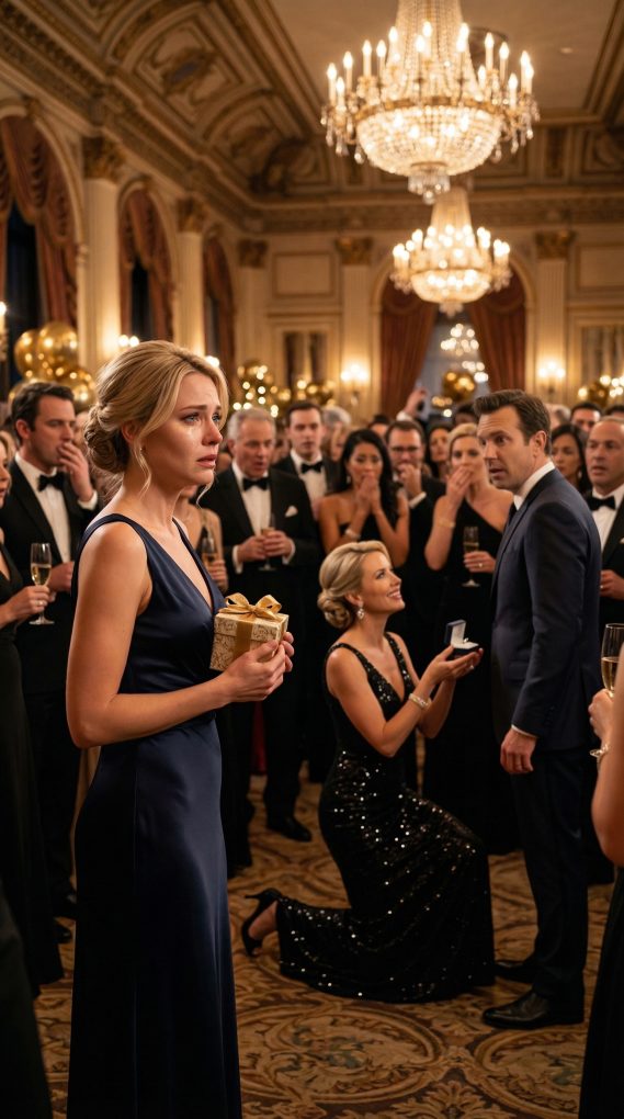 Part 1 – The Night I Was Supposed to Be Invisible My name is Olivia Bennett, and until that night I had spent years happily standing in the background of my husband’s success. My husband, Andrew Bennett, worked as an executive at a rapidly growing tech company in New York called HelixNova. On paper, Andrew was the rising star of the company—young, charismatic, and trusted by the CEO. What most people didn’t know was that eight years earlier, when HelixNova was just a risky startup, I had quietly invested the majority of my inheritance into it. That investment secured me a 67% controlling share of the company. But Andrew rarely mentioned that part of the story. To the outside world, I was simply the quiet wife who attended company events and smiled politely beside him. The night of HelixNova’s luxury annual gala was supposed to celebrate the company’s record-breaking profits. The ballroom inside the Crystal Regent Hotel sparkled with expensive decorations, champagne towers, and hundreds of well-dressed guests. I arrived late because of work and stepped inside holding a small wrapped box for Andrew. It was meant to celebrate his newest promotion. But the moment I walked further into the ballroom, the atmosphere felt strange. People were gathering near the center stage, laughing and whispering. That’s when I saw Andrew standing under the spotlight. And beside him stood the woman who ran the entire company—HelixNova’s CEO, Catherine Sterling. Catherine was known in the business world as brilliant, ruthless, and fearless. I had met her before, but never like this. In front of the entire room, Catherine suddenly stepped forward… and then did something that made the crowd gasp. She dropped down onto one knee. “Andrew,” she said confidently, holding up a ring that glittered beneath the chandelier lights. “Will you leave your powerless wife and marry me instead?” The room exploded with laughter like they believed it was part of the entertainment. My chest tightened as I waited for Andrew to shut the joke down. He didn’t. Instead, he looked down at Catherine, smiled slowly… and said, “Yes.” Applause and cheers filled the room. I didn’t shout. I didn’t cry. I simply turned around and walked out of the ballroom without saying a word.