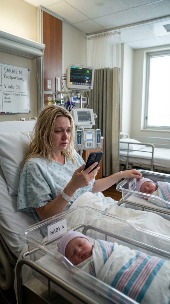 My name is Natalie Brooks, and the night I gave birth to my twins was the loneliest moment of my life. I was lying in a hospital bed in Dallas Texas, exhausted after hours of labor, staring at the ceiling while the sound of newborn cries echoed softly beside me. My two babies were resting in small bassinets near the window, wrapped in warm hospital blankets. I should have been surrounded by family, by my husband, by people celebrating the beginning of our new life together. Instead, the room was silent. My husband, Eric Brooks, had promised he would be there. But hours passed and the door never opened. At first I told myself he was stuck in traffic or delayed at work. Then my phone buzzed on the bedside table. I picked it up slowly, expecting a message from him saying he was on his way. Instead, a photo appeared on my screen from social media. The image made my stomach twist instantly. It showed Eric standing inside his parents house surrounded by a group of smiling relatives. Champagne glasses were raised in celebration while a tall blonde woman stood proudly in the center of the room. Her name was Vanessa Hale, a wealthy businesswoman who had recently become very close to my husband. The caption under the photo read celebrating Vanessa for saving the Brooks family home. My chest tightened as I stared at the screen. No one in that room knew the truth. Five months earlier, Eric’s parents had been on the edge of losing their house after a series of bad investments. Eric had begged me not to tell anyone when I secretly paid the debt using my inheritance from my late grandmother. He said it would embarrass his parents if people knew they needed help. So I stayed silent while Vanessa somehow took credit for the rescue. Now the entire family was celebrating her generosity while I lay alone in a hospital bed giving birth to Eric’s children. I looked toward the bassinets beside me. My twins slept peacefully, unaware that their father was not there. A few hours later, the hospital door finally opened. Eric walked into the room holding a thin envelope. He placed it quietly on the bedside table and said something that made my heart stop. Natalie, we need to talk about ending this marriage.