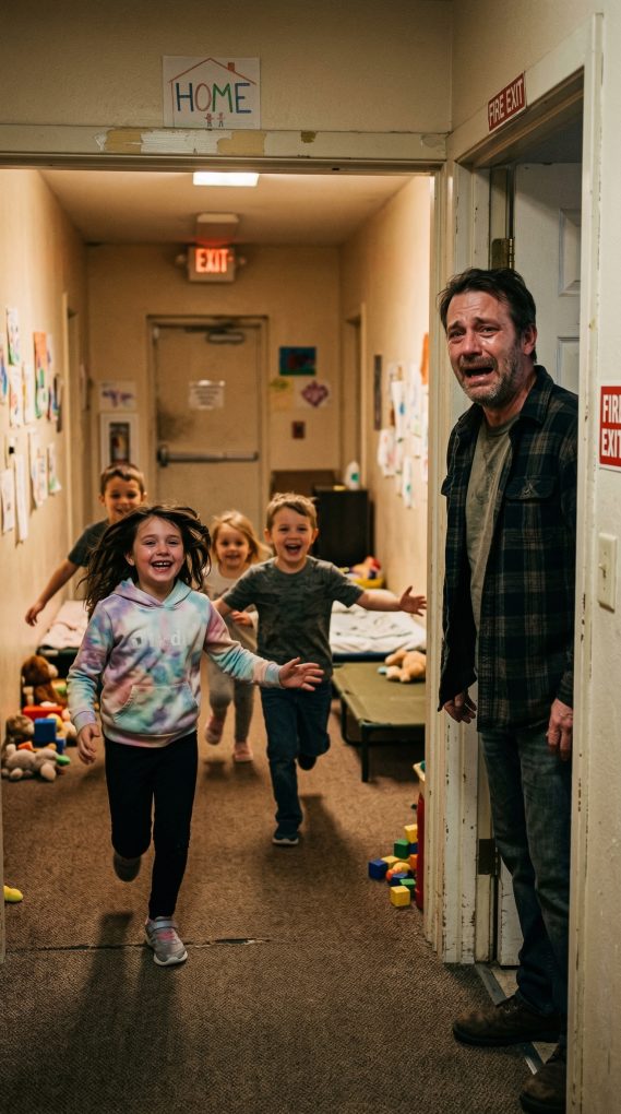 Every night, a man called a county shelter to read bedtime stories to the children, thinking it was just a small kindness to help them fall asleep. He never met them, never saw their faces. But the first time he visited in person, the moment he stepped through the door, the kids ran straight toward him shouting, “Dad!”—and he realized his voice had been their only comfort for months.
