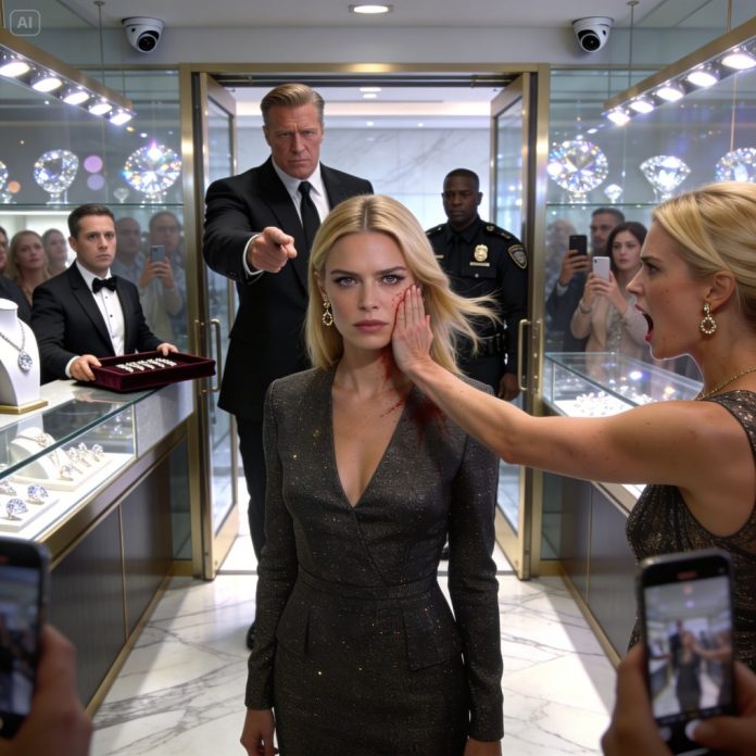 My jealous sister slapped me across the face in a jewelry store and called me a “shadow” because I was being treated like a VIP—then a billionaire walked in and said, “Touch my wife again and see…” She froze, then stammered.