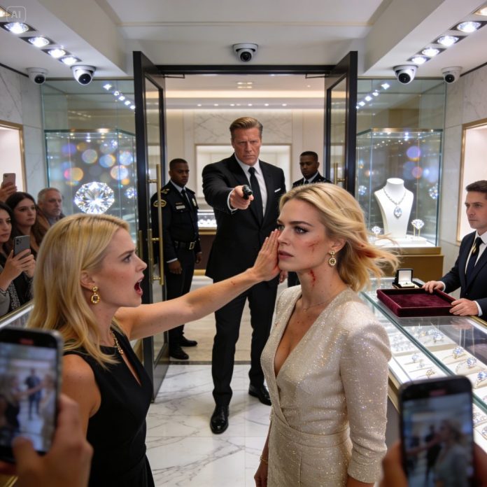 In a jewelry store, my jealous sister slapped me and sneered, calling me a “shadow” for getting VIP treatment—until a billionaire stepped through the door, eyes cold: “Lay a hand on my wife again, and you’ll regret it.” She went rigid… then started stuttering.