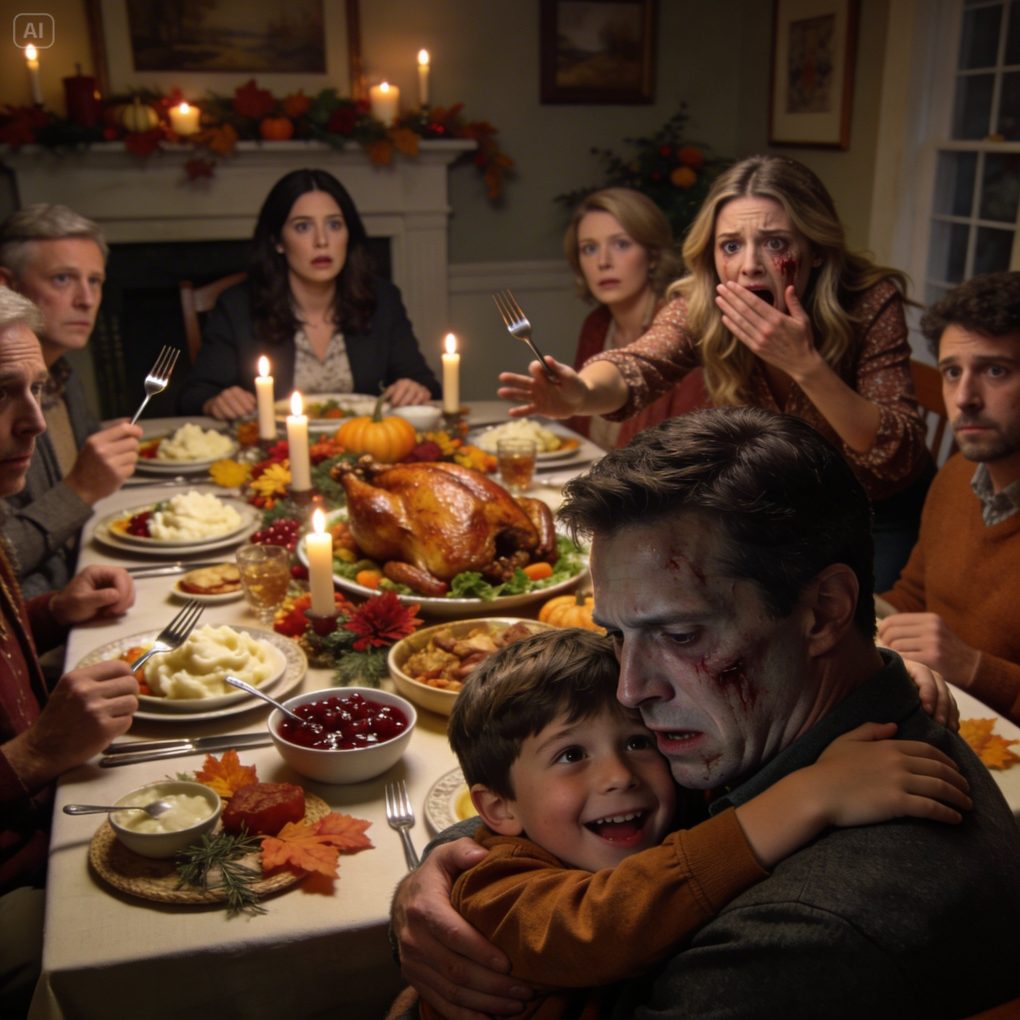 During Thanksgiving dinner, my five-year-old nephew wrapped his arms around my husband. “Dad, when will you come home again?” he asked innocently. I laughed nervously and corrected him. “That’s your uncle.” But the boy shook his head. “No. Mom said he’s my dad.” I turned to my husband — his face drained of color. Before anyone could speak, my sister rushed forward and clamped her hand over the boy’s mouth.