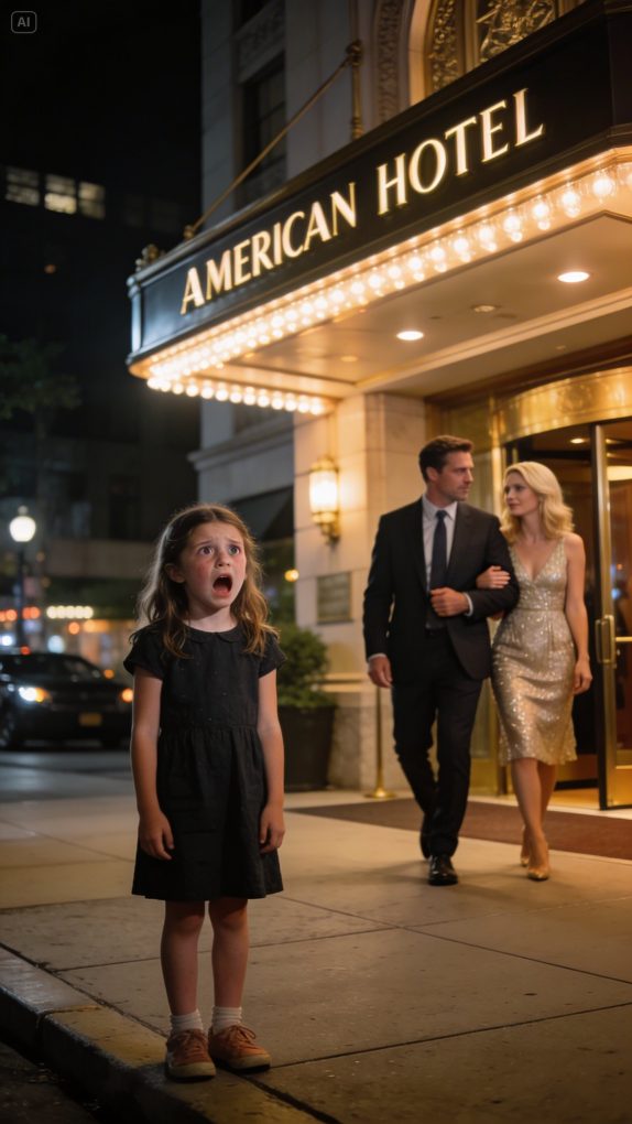 The revolving doors of the Grand Harcourt Hotel turned slowly under the chandelier light, carrying in a gust of winter air and the faint smell of rain from the avenue outside. Guests crossed the marble lobby with polished suitcases and low voices, the front desk glowed under warm brass lamps, and a pianist in the lounge nearby was playing something soft and expensive that seemed made for people who never hurried. In the middle of that polished evening, eight-year-old Lily Bennett stood in the doorway with one mitten half off, a paper snowflake clutched in her hand, and suddenly forgot how to breathe.
