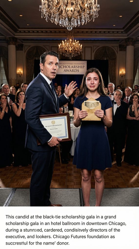 She walked onto the stage in a borrowed navy dress and shoes that had been polished so carefully the cracks in the leather looked almost dignified. She was slim, poised, and young in the way hardship sometimes makes young people seem older at first glance. Her hair was tied back neatly. Her face was pale but composed. The applause in the room swelled politely as she stepped toward me, and I lifted the oversized scholarship certificate with the practiced smile I had worn for years in rooms full of cameras.