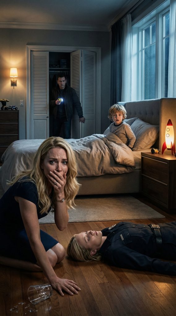 The dispatcher kept asking questions—was Madison breathing, was the child in danger, was anyone else in the room—but Claire had stopped listening. Noah was still staring toward the half-open closet door. Slowly, Claire followed his gaze.