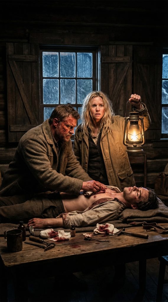 They laid Noah across the cabin table. Blood slicked the wood. Wind slammed against the walls. Adam cut away the ruined shirt and revealed a knife wound deep enough to kill a man before dawn.