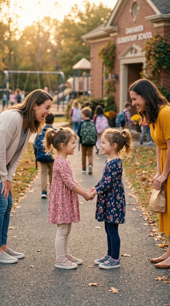 The moment Mrs. Carter said Margaret Bennett’s name, the pieces in my mind began connecting rapidly. Margaret had always been polite but distant toward me. She lived several hours away and rarely visited. Whenever we spoke, she avoided personal conversations and kept everything formal. At the time, I assumed it was simply her personality. Now the situation looked very different. “You’re saying Lily is my mother-in-law’s granddaughter?” I asked slowly. Mrs. Carter nodded. “Yes.” My mind raced through the implications. Daniel and I had been married for nine years. Emily was eight. If Lily looked exactly the same age… My voice came out quieter than I expected. “Who are her parents?” Mrs. Carter hesitated. “That part is complicated.” I took a step closer. “Please tell me.” She sighed. “Margaret said Lily’s mother passed away last year.” “And the father?” Mrs. Carter met my eyes carefully. “She didn’t say his name directly. But she mentioned something about a… ‘family mistake.’” The phrase echoed uncomfortably in my mind. I left the house that afternoon with Emily holding my hand tightly while Lily watched us from the doorway. The two girls waved to each other like old friends even though they had only just met. That night, after Emily went to bed, I sat across from Daniel at the kitchen table. “Do you know a girl named Lily?” I asked calmly. His reaction was immediate. His fork stopped halfway to his mouth. “Why would you ask that?” he said quickly. The hesitation in his voice told me everything. “Because she looks exactly like our daughter.” Daniel’s face turned pale. For several seconds he didn’t speak. Finally he leaned back in his chair and ran his hands over his face. “My mother was supposed to keep that secret,” he muttered. My chest tightened. “What secret?” Daniel looked at the table instead of me. “Before I met you… I dated someone briefly.” His voice was barely above a whisper now. “She got pregnant.” The room felt suddenly smaller. “You have another child,” I said slowly. Daniel nodded weakly. “My mother convinced me it would destroy my career if people found out back then.” The betrayal settled heavily in my chest, but something else hurt even more. “And you hid her?” I asked. “For eight years?” Daniel didn’t answer. Tears filled my eyes as I realized the cruel truth Emily had unknowingly discovered on her own. My daughter had been playing with her twin-like sister at school… while my husband’s family tried to pretend the girl didn’t exist. But one thing had already become clear in that moment. Secrets like that never stay hidden forever—especially when two children who share the same face finally meet.