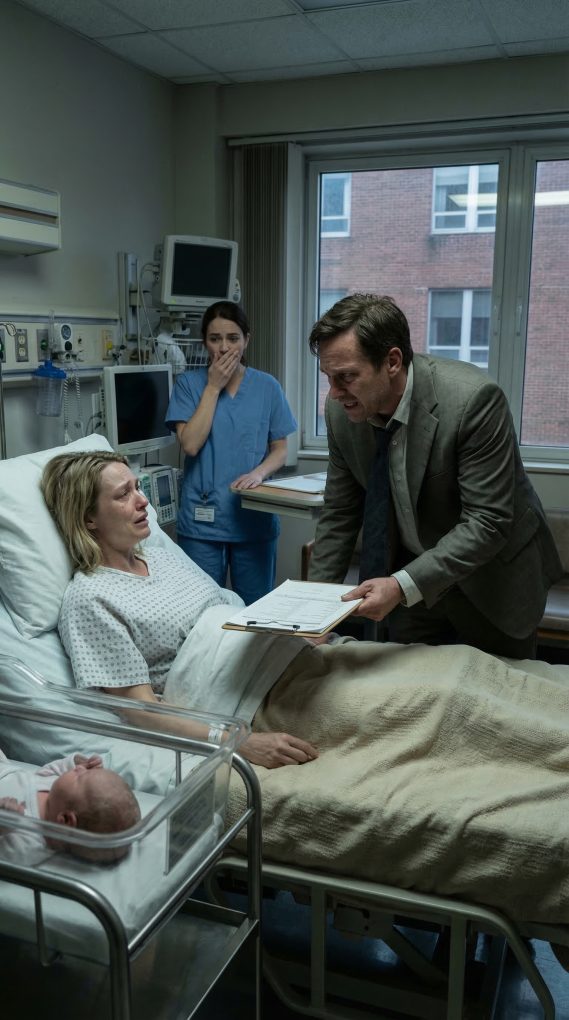 “This patient delivered minutes ago,” the nurse said, voice now flat with professional warning. “She is medicated, exhausted, and has not yet had her infant placed with her. No one is signing anything in here.”
