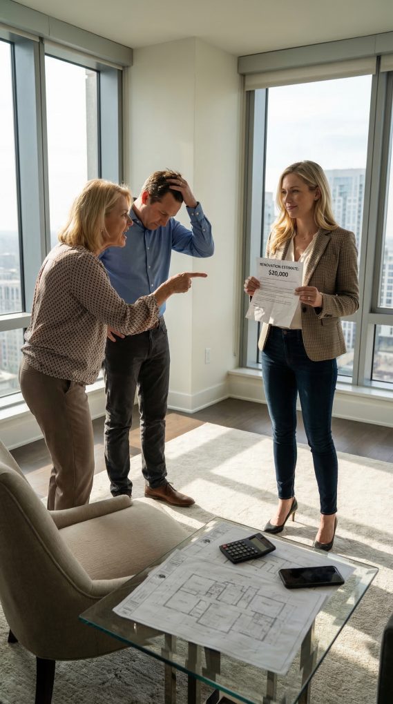 “Twenty thousand dollars,” my mother-in-law announced proudly, waving the renovation estimate. “You’ll pay for it. After all, you’re part of this family now.” I smirked and folded my arms. “Interesting,” I replied. “Your ‘family home’ has nothing to do with me… especially since your son is the one living in my apartment.” Her smile disappeared instantly. Then I pointed toward the door. “Now let’s settle something right now.”
