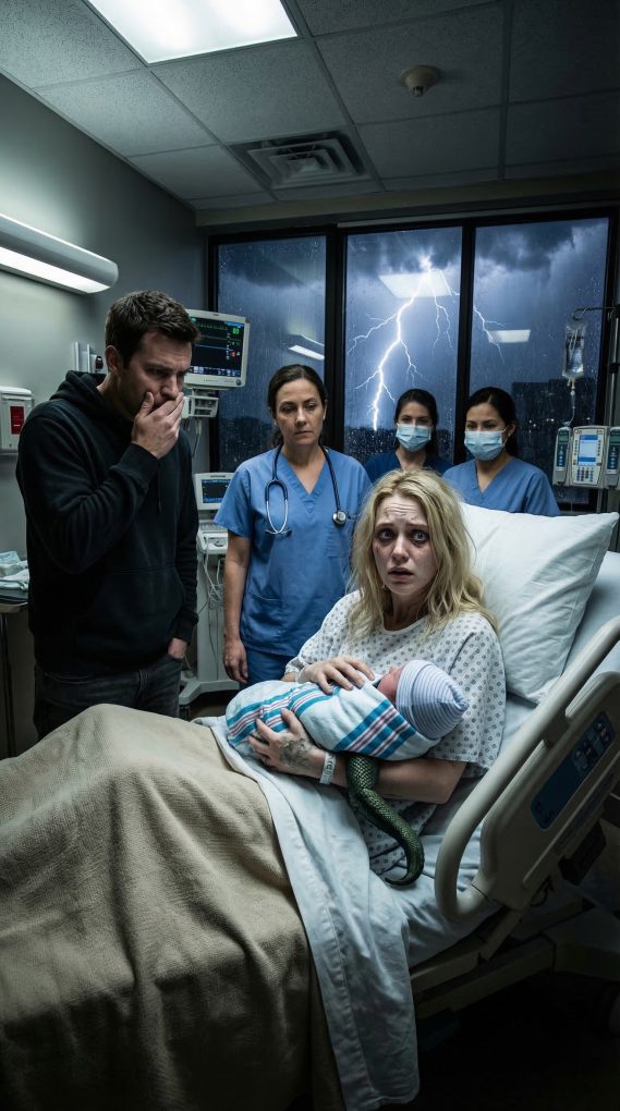 Emily Warren was twenty-six, exhausted and ghost-pale, her damp hair stuck to her cheeks, when Dr. Melissa Grant lifted the newborn into the bright delivery light and stopped moving. One nurse dropped an instrument. Another made the sign of the cross before seeming embarrassed she had done it. The baby was alive, undeniably alive—crying, writhing, fighting for breath—but his lower body was malformed in a way none of them had ever actually seen in real life. The skin on both legs was thickened and ridged in plate-like patterns that looked disturbingly reptilian under the surgical lamps. And from the base of his spine extended a thin fleshy appendage that curled like a tail. His hands were normal. His face was normal. When he opened his eyes, they were bright blue, frightened, and completely human.