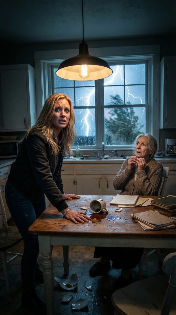 The night my grandmother told the truth, rain hammered against the kitchen windows so hard it sounded like handfuls of gravel. She sat at the table in her faded blue housecoat, hands wrapped around a chipped coffee mug, and said it without looking at me.