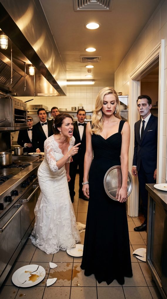 Part 1 – The Place They Thought I Belonged At my sister Victoria’s wedding, I learned that blood means very little when money walks into the room. The venue was a luxury hotel overlooking the Pacific, the kind of place where crystal chandeliers hung above marble floors and every guest wore something designer. I arrived quietly, trying not to attract attention. My name had been on the invitation after all, but the moment I stepped into the ballroom I felt the stares. Compared to the wealthy investors and executives filling the room, my simple navy dress looked painfully ordinary. I hadn’t expected to stand out so much. I barely had time to take two steps before Victoria spotted me. My younger sister walked toward me quickly, her expensive white gown shimmering under the lights. She looked perfect—like the magazine brides she had always dreamed of becoming. But the smile on her face disappeared the moment she stopped in front of me. “Emily,” she said flatly, looking me up and down. “Why are you here?” I frowned. “Because you invited me.” She laughed softly, though there was no humor in it. “I invited family,” she replied. My mother suddenly appeared beside her and grabbed my arm. “Come with me,” she whispered sharply, already pulling me away from the guests. They dragged me down a service hallway away from the ballroom music and laughter. I stopped walking. “What are you doing?” My mother sighed like I was being unreasonable. “You’re going to embarrass your sister tonight.” Victoria crossed her arms, clearly irritated. “Look around, Emily. These people are CEOs, investors, founders. You don’t fit here.” I felt the sting of the words but kept my voice steady. “I’m still your sister.” Victoria picked up a tray of champagne glasses from a passing waiter and shoved it into my hands. “Then act like it,” she sneered. “This is where poor people belong. Now go serve the guests.” My mother nodded in agreement. “Just help in the kitchen. Stay out of sight.” I stood there holding the tray while they turned around and walked back toward the ballroom without another glance. For a moment I considered leaving entirely. But something stubborn inside me refused to give them that satisfaction. So I walked into the kitchen and quietly started helping the staff carry drinks and plates. The cooks barely noticed me among the chaos of preparing food for two hundred guests. Fifteen minutes later, the kitchen doors opened again. A tall man stepped inside wearing a perfectly tailored black tuxedo. It was the groom—Daniel Hayes, the famous CEO Victoria had bragged about for months. He walked in quickly, clearly looking for something. Then he saw me holding the tray. He froze. The color drained from his face so fast it was almost frightening. “Emily?” he whispered. The tray nearly slipped from my hands. And suddenly the busy kitchen fell completely silent.