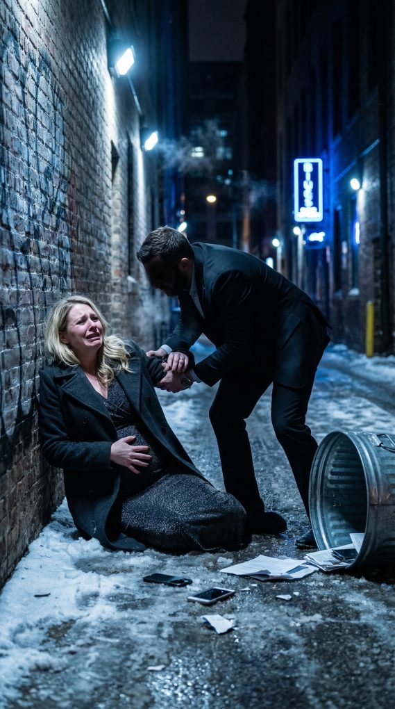 Amelia turned, trying to get back inside the hospital, but Ethan caught her arm. Hard. She fought him, panic exploding through her chest, but pregnancy had slowed her body and sharpened her fear. He dragged her through the service gate and shoved her into the alley, where slush and broken ice cracked under her knees. Her head slammed against brick. The world blurred.